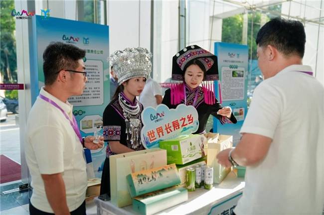 主会场大会结束后,与会嘉宾还参观了巴马特色产品展,品鉴了火麻羹、巴马丽琅矿泉水、山茶油、火麻油等长寿美食,通过一对一洽谈对接,现场达成一批采购意向。
